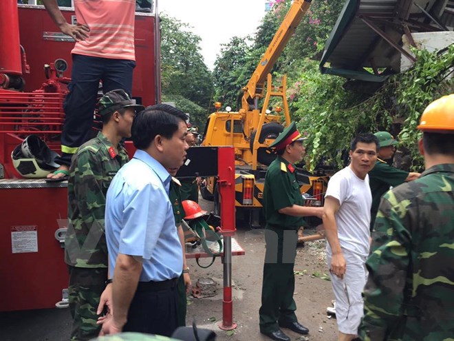 Chủ tịch Ủy ban nhân dân Thành phố Hà Nội Nguyễn Đức Chung đã trực tiếp có mặt để chỉ đạo vụ sập nhà số 43 Cửa Bắc, Hà Nội.