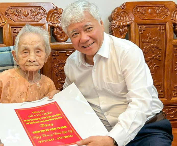 Chủ tịch UBTW MTTQ Việt Nam Đỗ Văn Chiến thăm, tặng quà Mẹ VNAH Nguyễn Thị Dấng