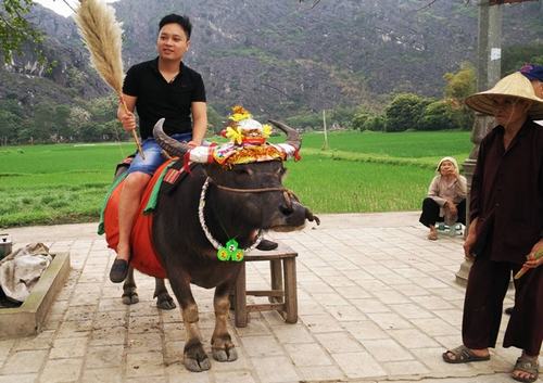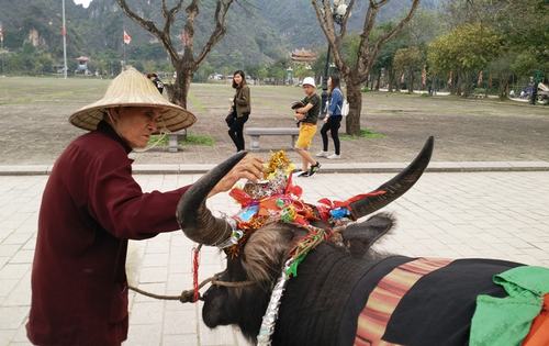 Con trâu của cụ ông 83 tuổi ở cố đô Hoa Lư (Ninh Bình) không chỉ biết cày ruộng mà còn biết “hái ra tiền”. Hàng ngày cụ đưa trâu đi làm “mẫu ảnh” để du khách được hóa thân thành người anh hùng Đinh Bộ Lĩnh cưỡi trâu phất cờ lau đánh trận giả.