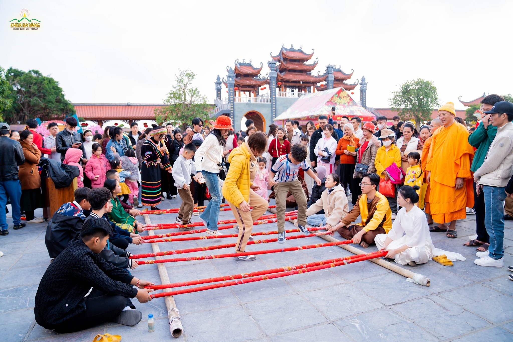Đến chùa Ba Vàng dịp đầu xuân mới, du khách không chỉ được trải nghiệm những giá trị tâm linh, cảm nhận sự linh thiêng và bình yên chốn cửa thiền mà còn được hòa vào không gian đậm đà bản sắc văn hóa truyền thống. Du khách như được ngược dòng thời gian trở lại tuổi thơ với những kỷ niệm mái chùa, giếng nước, sân đình và với các trò chơi dân gian như đánh chuyền, nhảy sạp, ô ăn quan, đi chợ quê,… ngay trong khuôn viên chùa.