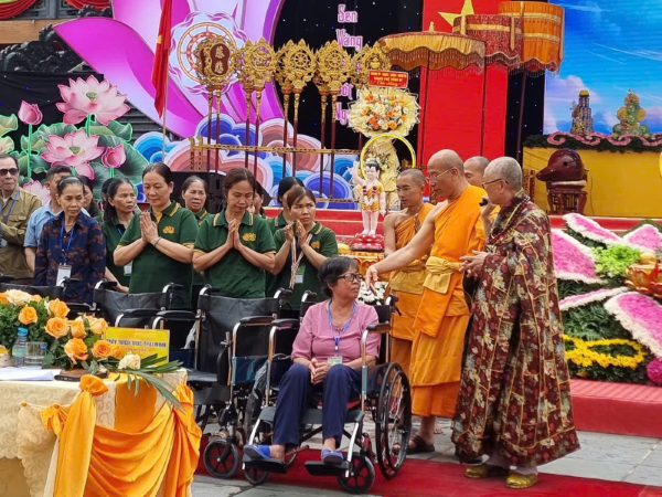 Tại buổi lễ, Chùa Ba Vàng tặng 61 chiếc xe lăn cho người tàn tật, hoàn cảnh đặc biệt khó khăn trên địa bàn phường Thanh Sơn và phường Quang Trung, thành phố Uông Bí (Quảng Ninh).