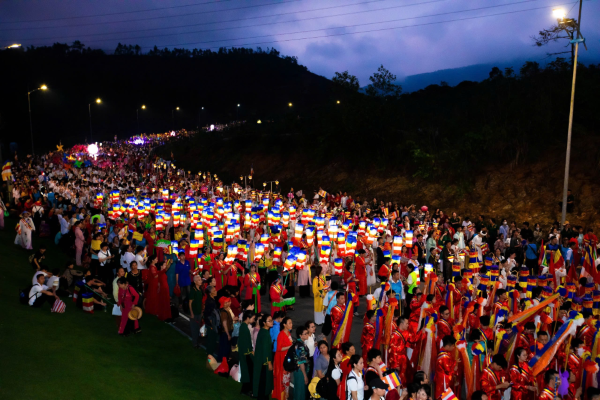 Lễ rước xe hoa gây ấn tượng mạnh với những bộ trang phục truyền thống đa dạng của Việt Nam và các quốc gia có nền Phật giáo phát triển, thể hiện tinh thần giao lưu văn hóa, hòa hợp tôn giáo và đoàn kết quốc tế. Đặc biệt, hàng nghìn ngọn đăng lung linh được thắp sáng trong đêm trên núi Thành Đẳng nơi chùa Ba Vàng toạ lạc không chỉ tạo nên khung cảnh huyền ảo mà còn lan tỏa thông điệp tri ân và cầu chúc an lành, thu hút đông đảo sự chú ý và tham gia của người dân, Phật tử và du khách xa gần.