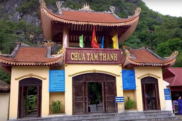 Động Tam Thanh nằm tựa mình vào dãy núi có hình đàn voi nằm phục trên thảm cỏ xanh. Cửa động hướng về phía Đông, được những hàng cây cổ thụ bao phủ, che chắn như một án bình phong trấn giữ trước cửa thiền.
