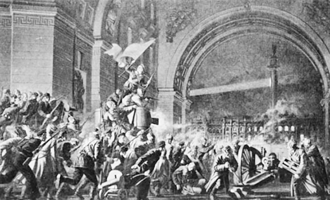 Rạng sáng ngày 7-11-1917 (25 tháng 10 theo lịch Nga cũ) lực lượng khởi nghĩa tấn công Cung điện Mùa Đông ở Petrograt (nay là Saint Petersburg), mở đầu cuộc Cách mạng tháng Mười Nga vĩ đại.