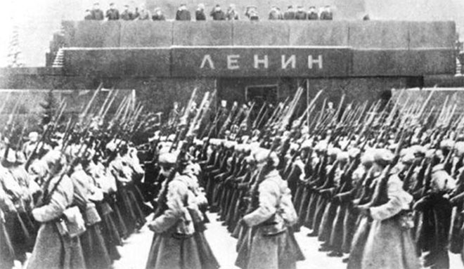 Lễ diễu binh kỉ niệm 10 năm cuộc Cách mạng Tháng 10 vào năm 1927, 3 năm sau khi Lenin mất.