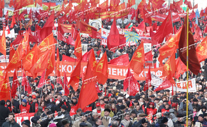 Những người Cộng sản Liên Bang Nga xuống đường chúc mừng 93 năm Cách mạng tháng Mười năm 2010.