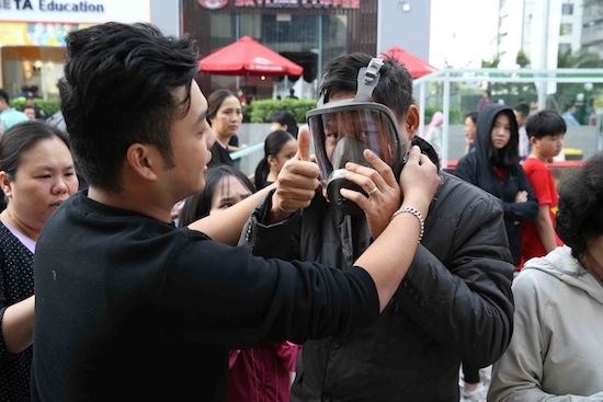 | Cư dân thực hành đeo mặt nạ chống độc |