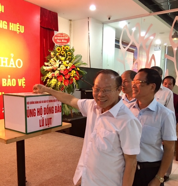 | Lãnh đạo Hội và các đại biểu dự Hội thảo quyên góp tiền ủng hộ đồng bào bị thiên tai lũ lụt tại các tỉnh miền núi phía Bắc. |
