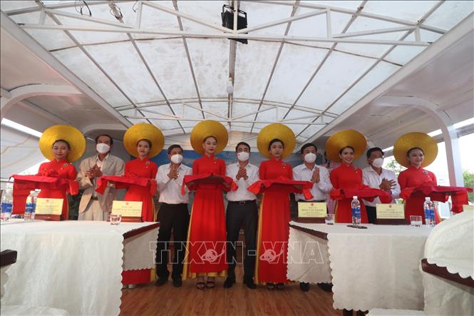 Cắt băng khai trương tàu du lịch. Ảnh: Duy Khương/TTXVN