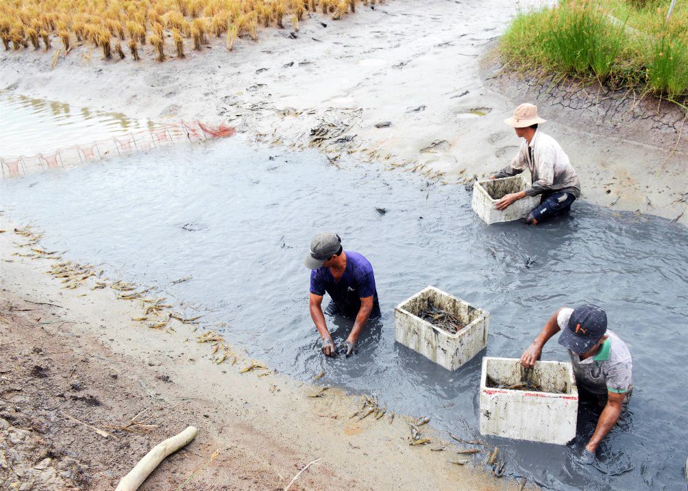 Với mô hình nuôi tôm càng xanh trong ruộng lúa, nông dân vừa thu hoạch tôm vừa thu hoạch cả lúa, thu nhập nhân đôi.