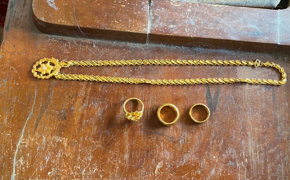 Sợ mẹ chồng phát hiện nên Lượm tạo dựng hiện trường giả rồi kêu mẹ chồng vào kiểm tra thì phát hiện mất số vàng trên. Ngay sau đó, lực lượng Công an đã thu hồi 7 chỉ vàng đã đem cầm và số vàng còn lại mà Lượm đang cất giấu.