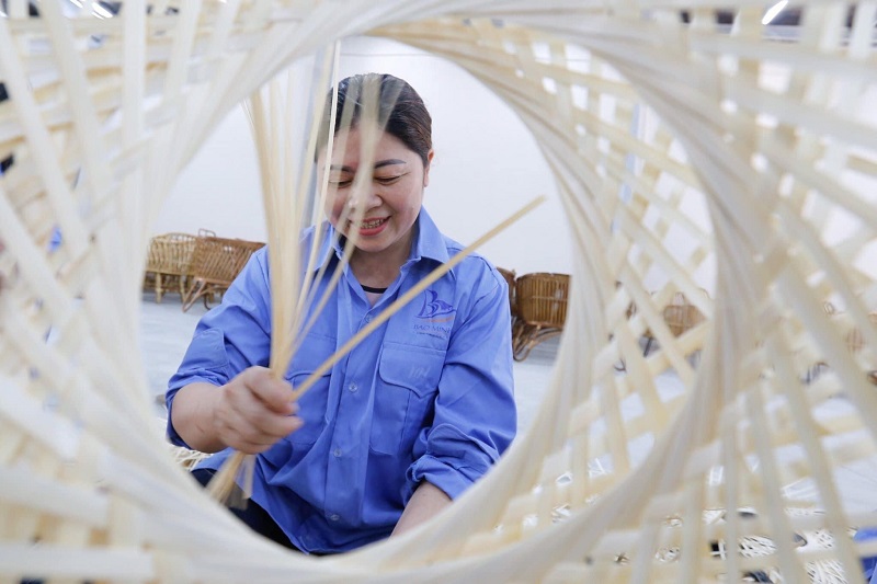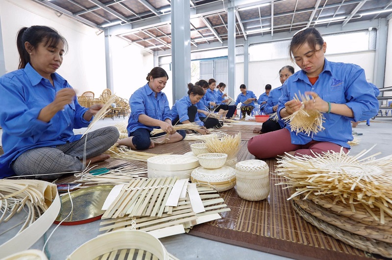 Thợ thủ công công ty SX Bảo Minh (Đông Phương Yên, Chương Mỹ) đang hăng say sản xuất.