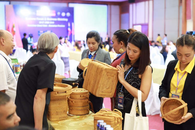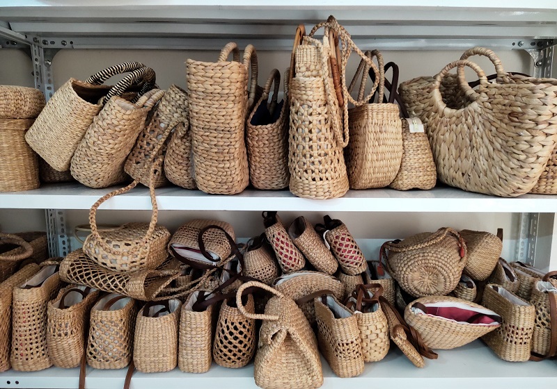 Khách hàng đang lựa chọn sản phẩm mây tre đan.