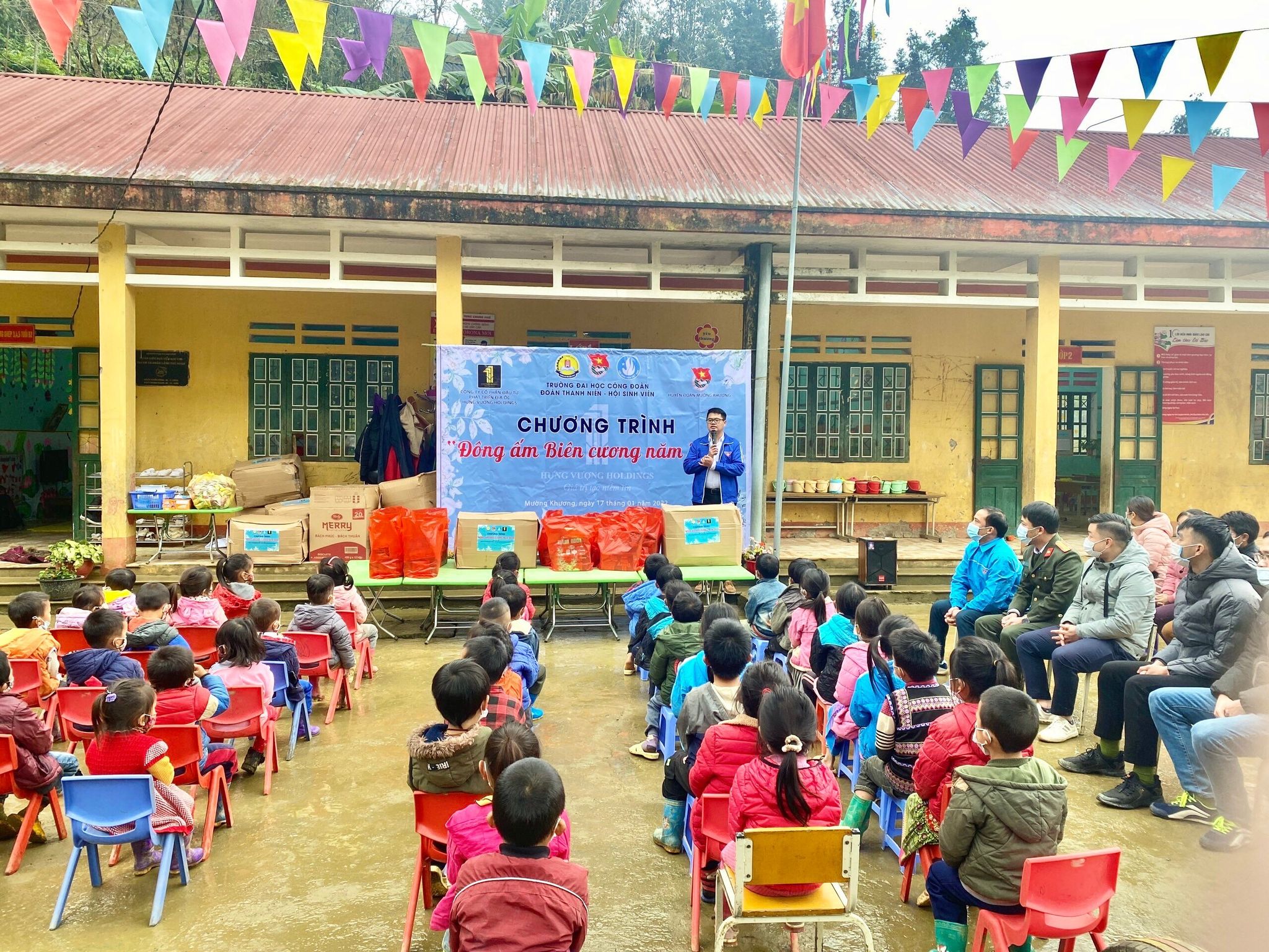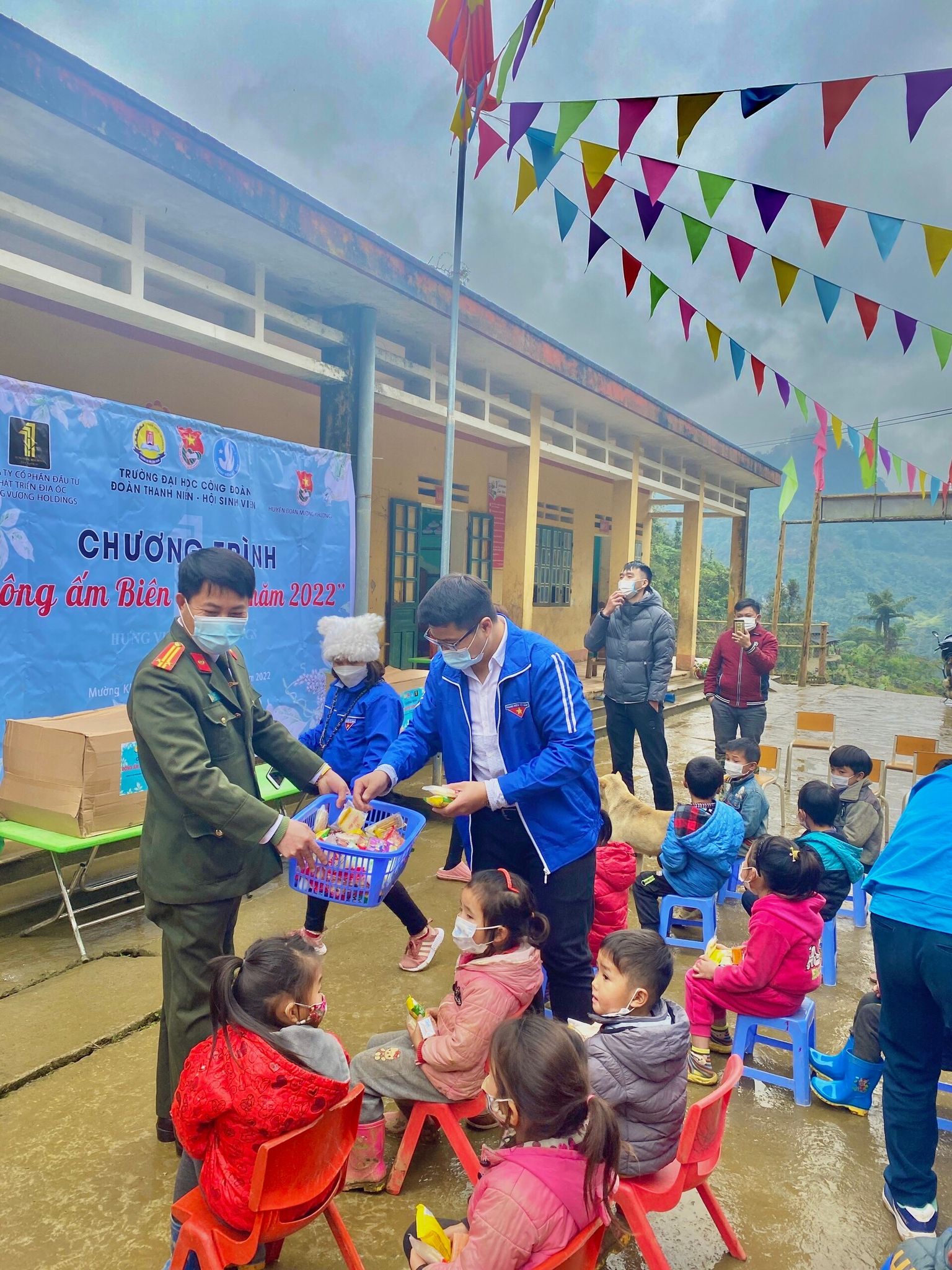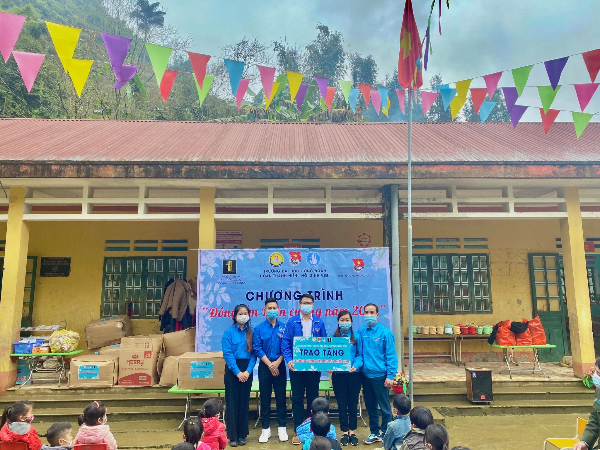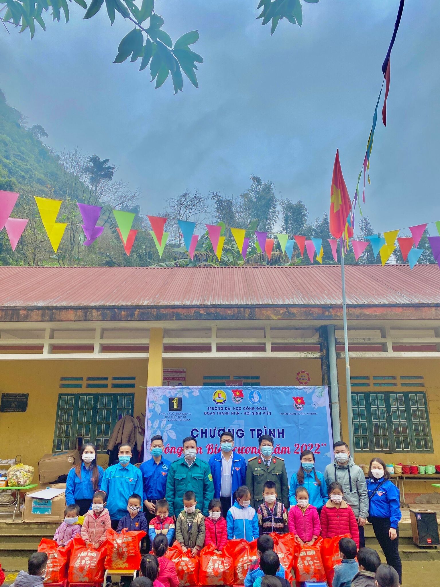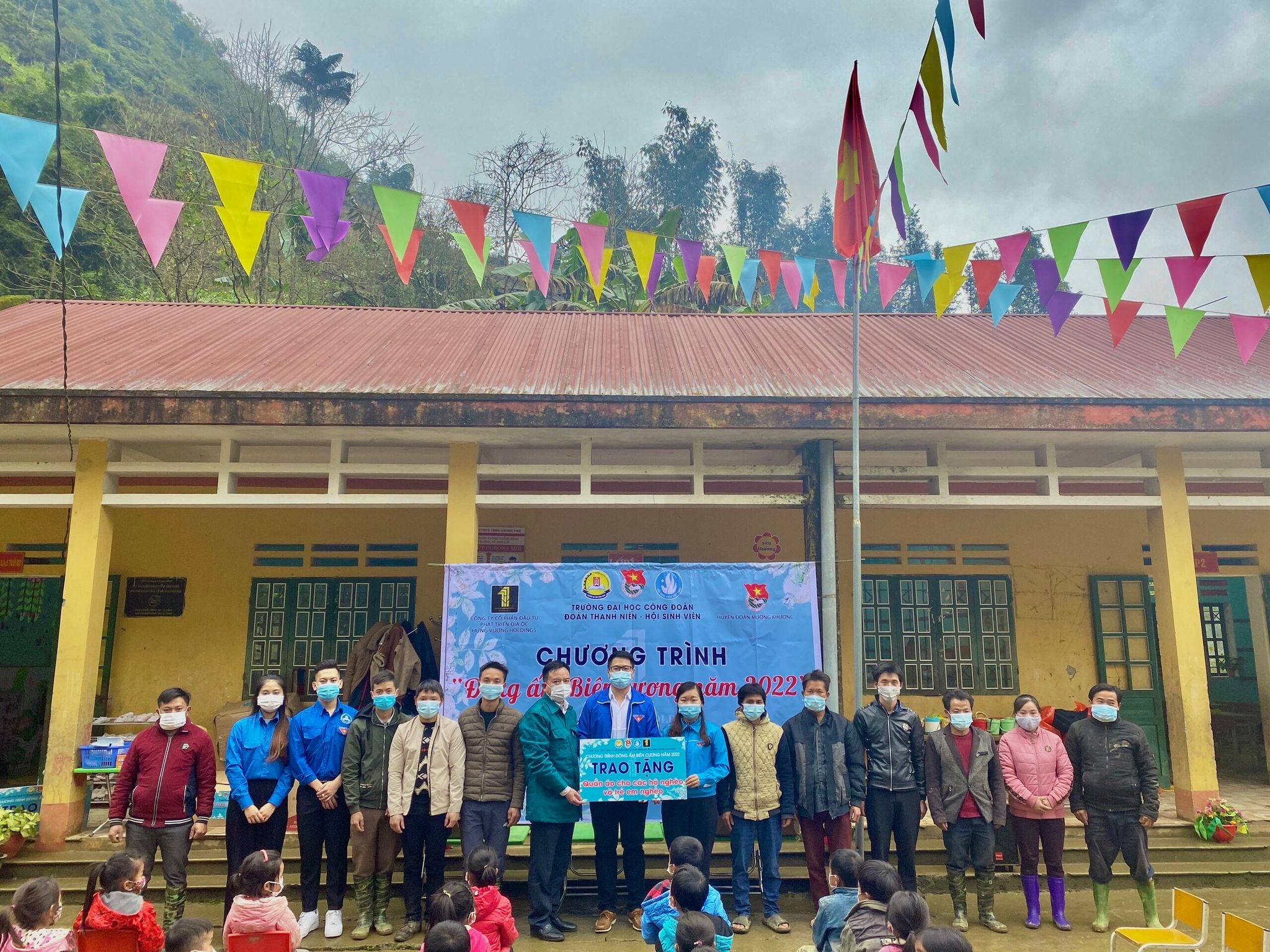 Bên cạnh đó, tại chương trình, Đoàn thanh niên - Hội sinh viên Trường ĐHCĐ và Huyện đoàn Mường Khương đã trao 10 phần quà Tết cho 10 Em học sinh có hoàn cảnh khó khăn nhất tại điểm Trường. Đồng thời, những phần quà khác là bánh, kẹo, sữa,… cũng được Ban tổ chức trao tặng cho toàn bộ các em học sinh tại điểm Trường Thôn Vả Thàng, xã Tung Chung Phố, huyện Mường Khương, Tỉnh Lào Cai.