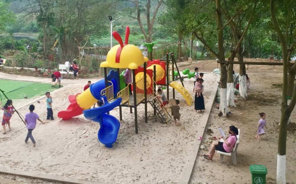 Trẻ em vui chơi ở vườn rừng ven sông Hồng