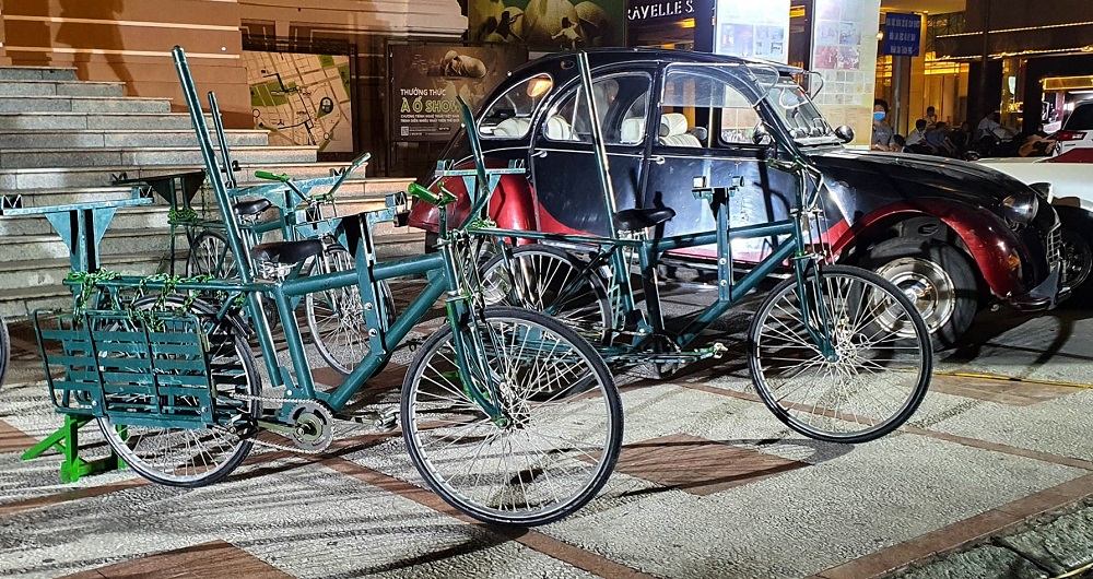 Chiếc xe thồ, hình ảnh quen thuộc của những người lính thời chiến tranh lẫn thời bình đã xuất hiện phía trước Nhà hát TP Hồ Chí Minh để du khách có thể tham quan và chụp ảnh.