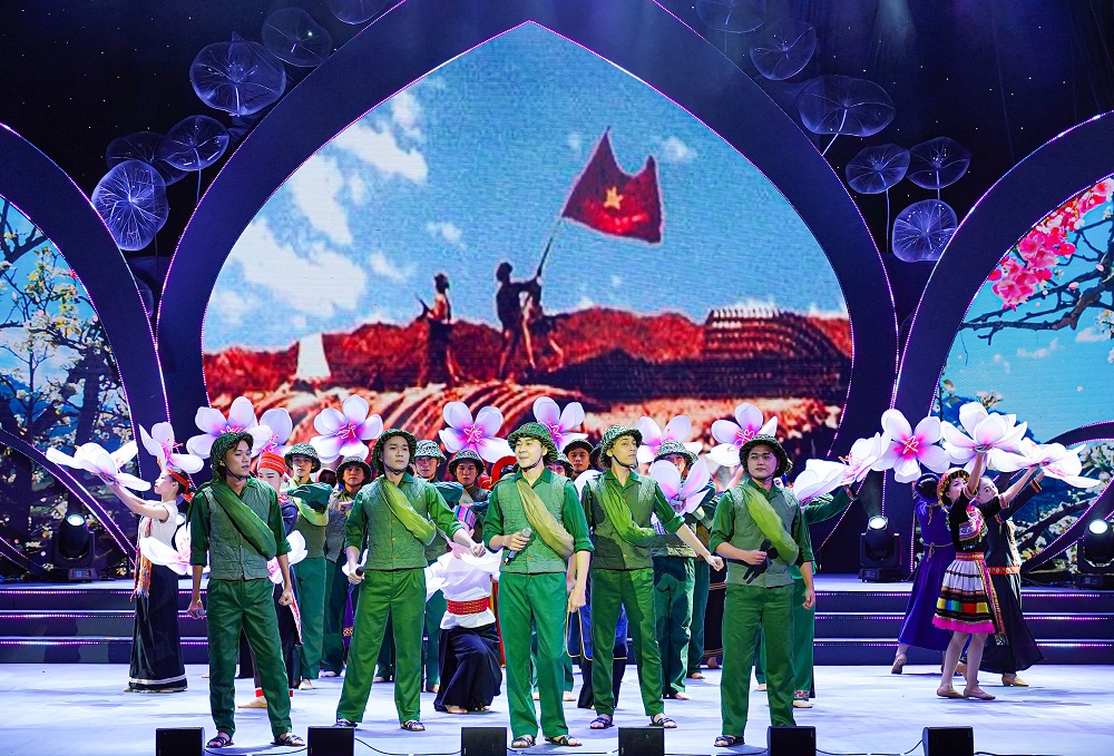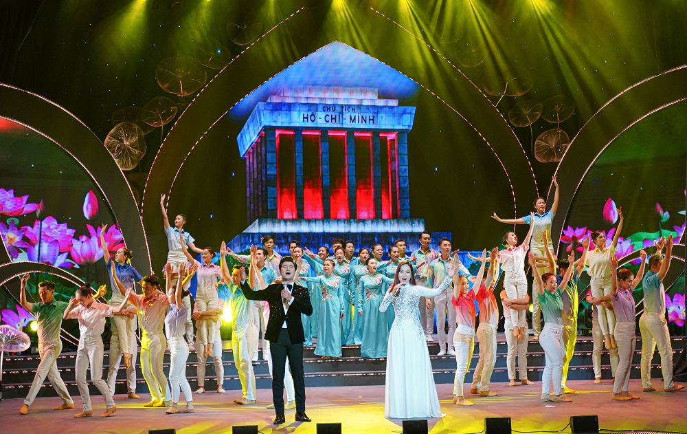 Các tác phẩm âm nhạc truyền thống, tái hiện cuộc đời sự nghiệp chủ tịch Hồ Chí Minh vĩ đại được thực hiện một cách công phu, hào hùng: Hồ Chí Minh đẹp nhất tên Người, Dấu chân phía trước, Người Cộng sản đầu tiên, Chiến thắng Điện Biên, Tình Bác sáng đời ta, Bác đang cùng chúng cháu hành quân, Tiến về Sài Gòn, Như có Bác trong ngày vui đại thắng, Tiếng hát từ Thành phố mang tên Người; ca cảnh Lời ca dâng Bác, chiếu video clip Lửa căm hờn, trích Tuyên ngôn độc lập…