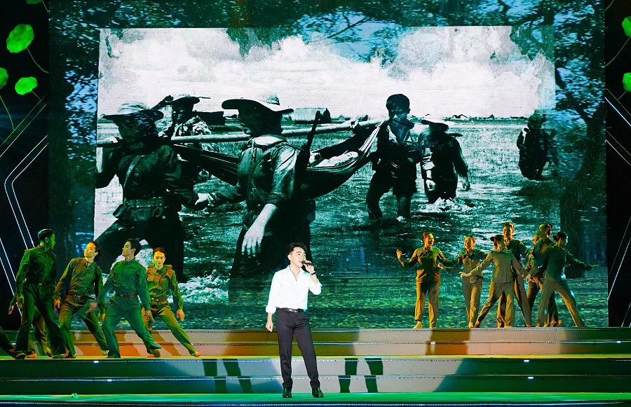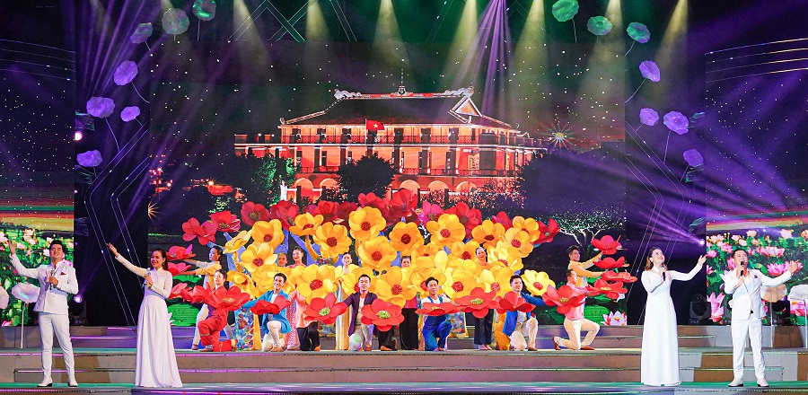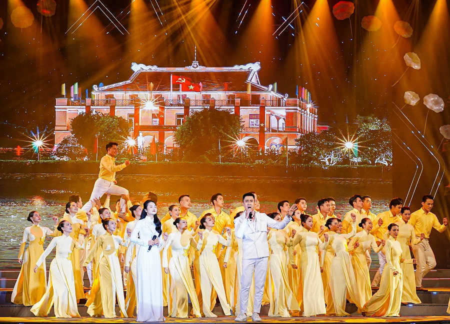 Chương trình nghệ thuật được thực hiện qua 3 chương gồm: Thành phố buổi bình minh; sắc màu thành phố tôi yêu; thành phố ngời sáng tên Bác. Nhiều ca khúc nổi tiếng gắn liền với quá trình hình thành, phát triển của Thành phố được trình diễn đến khán giả: Lời Bác sáng mãi muôn đời, Mùa xuân trên TP Hồ Chí Minh, Chào 50 năm thành phố rạng rỡ tên Người, TP Hồ Chí Minh - Thành phố tôi yêu, Tiếng hát từ Thành phố mang tên Người, TP Hồ Chí Minh - Nơi những dòng sông hội ngộ, Bình minh thành phố...