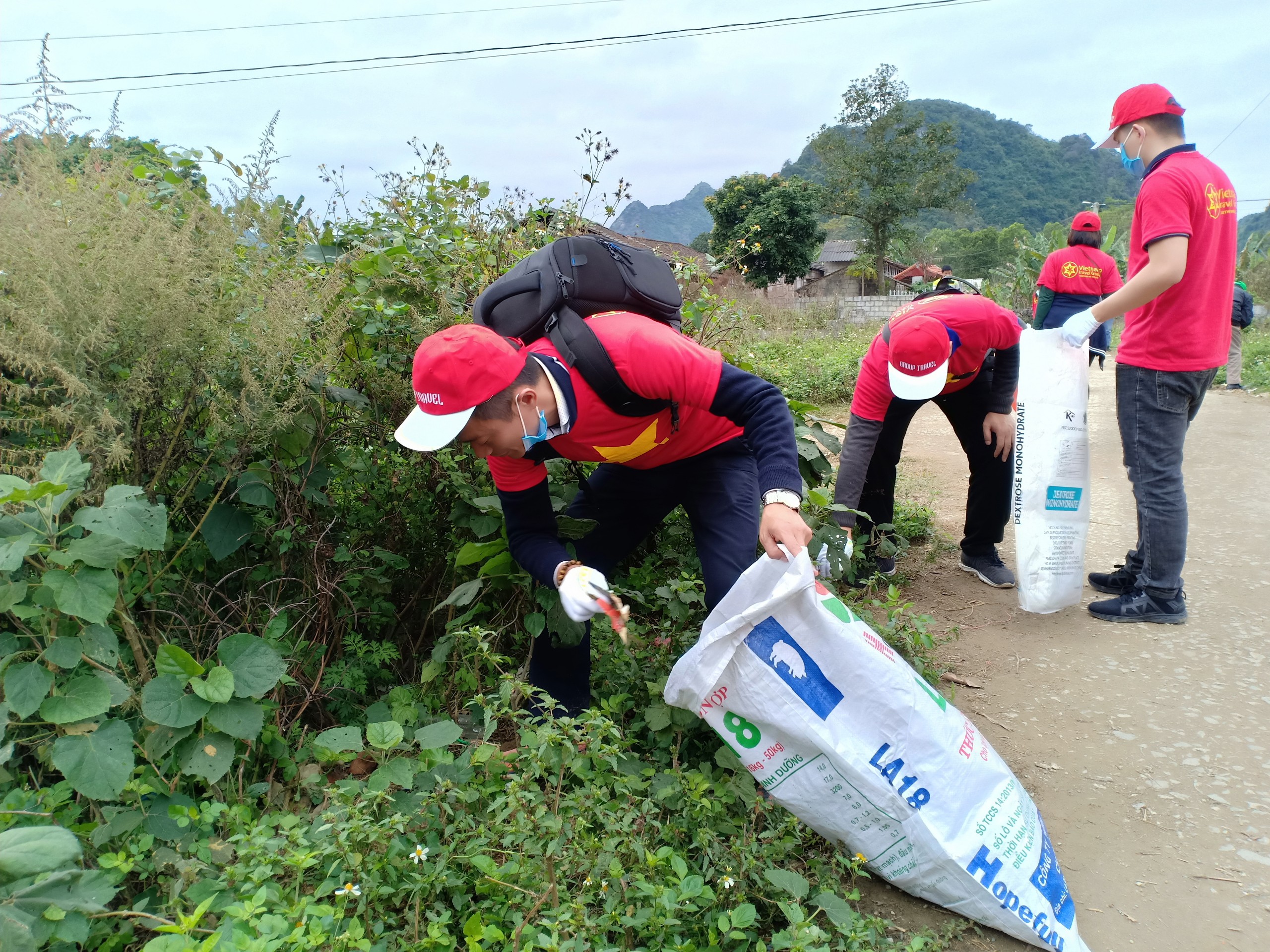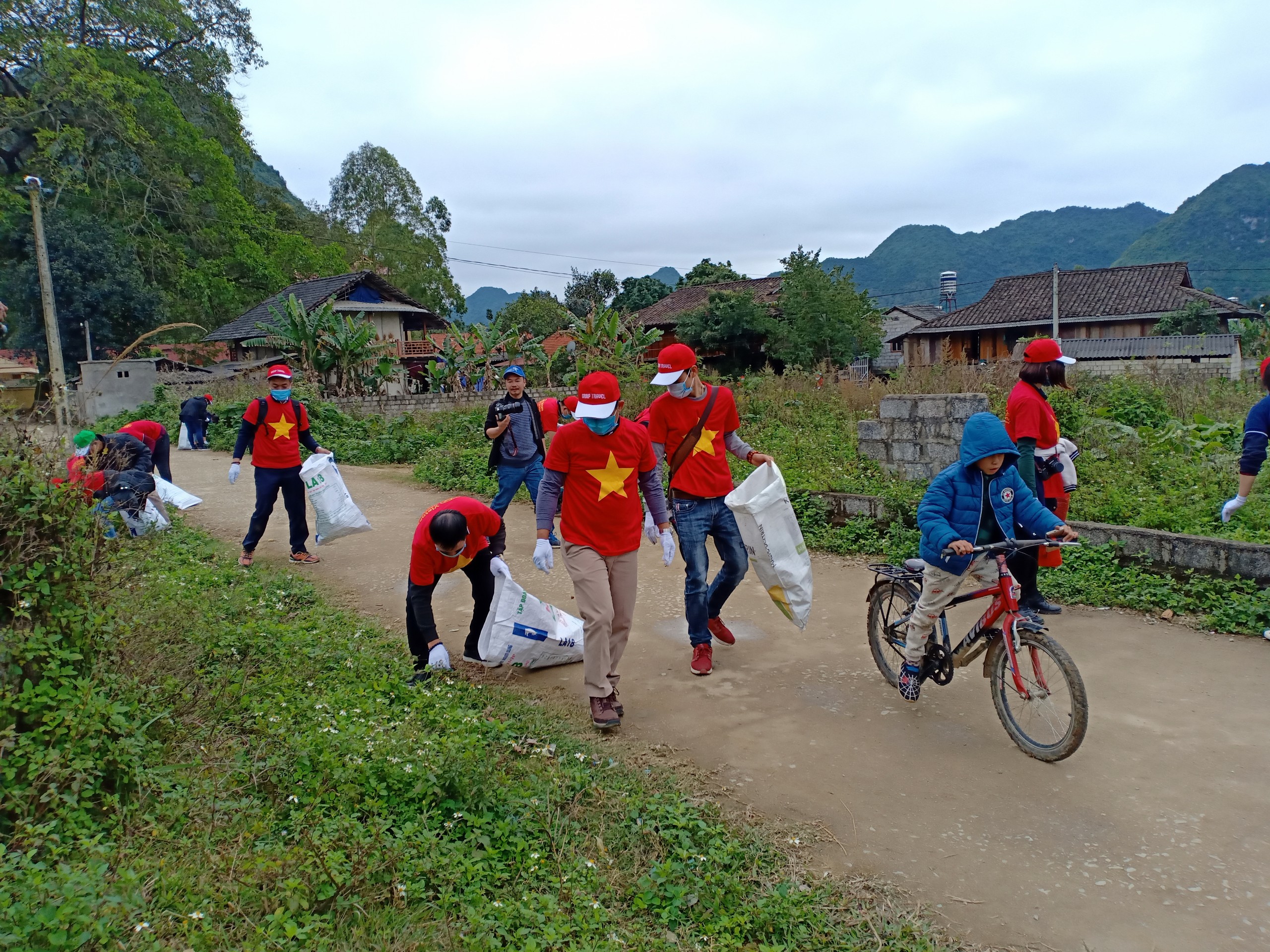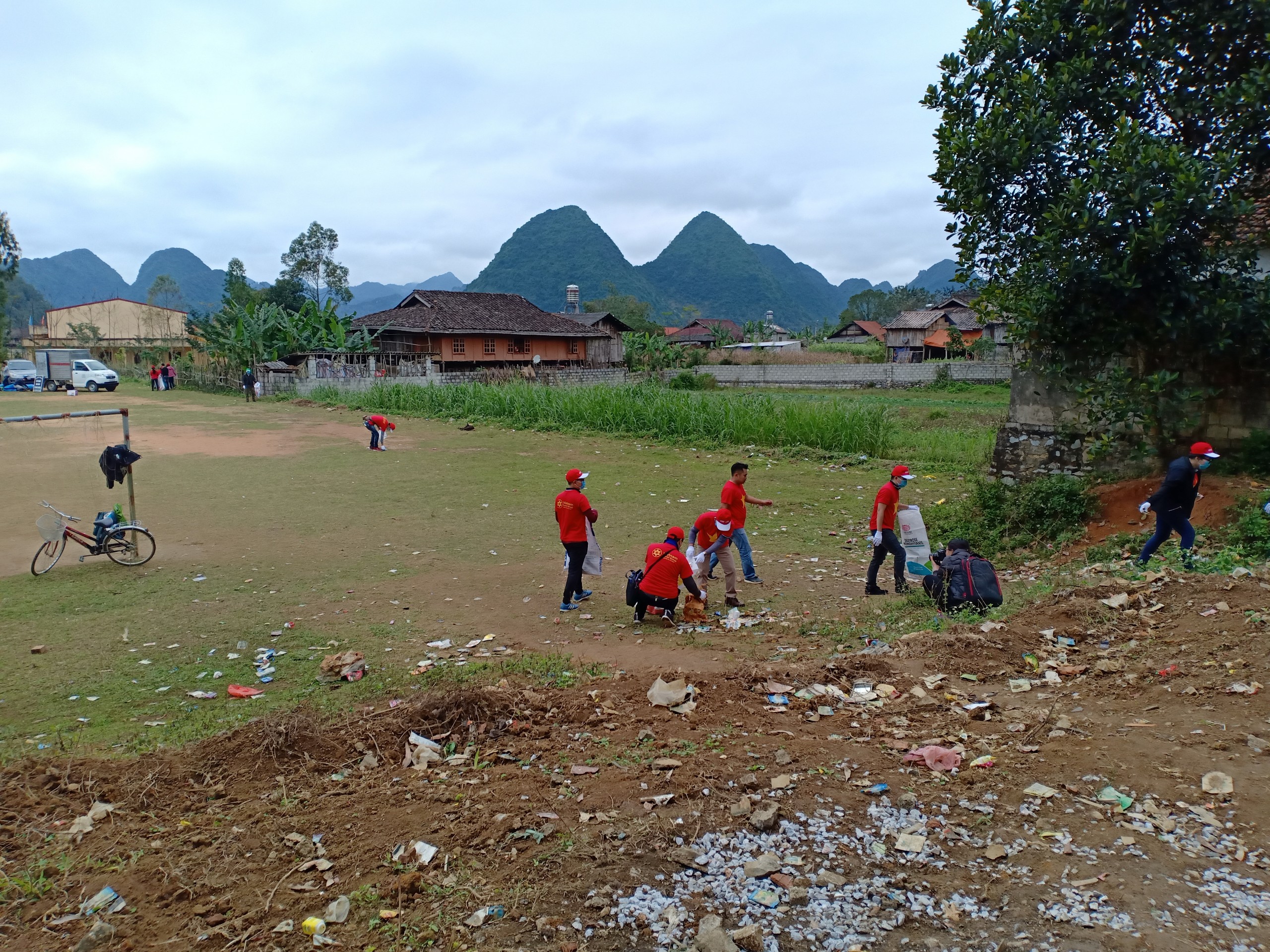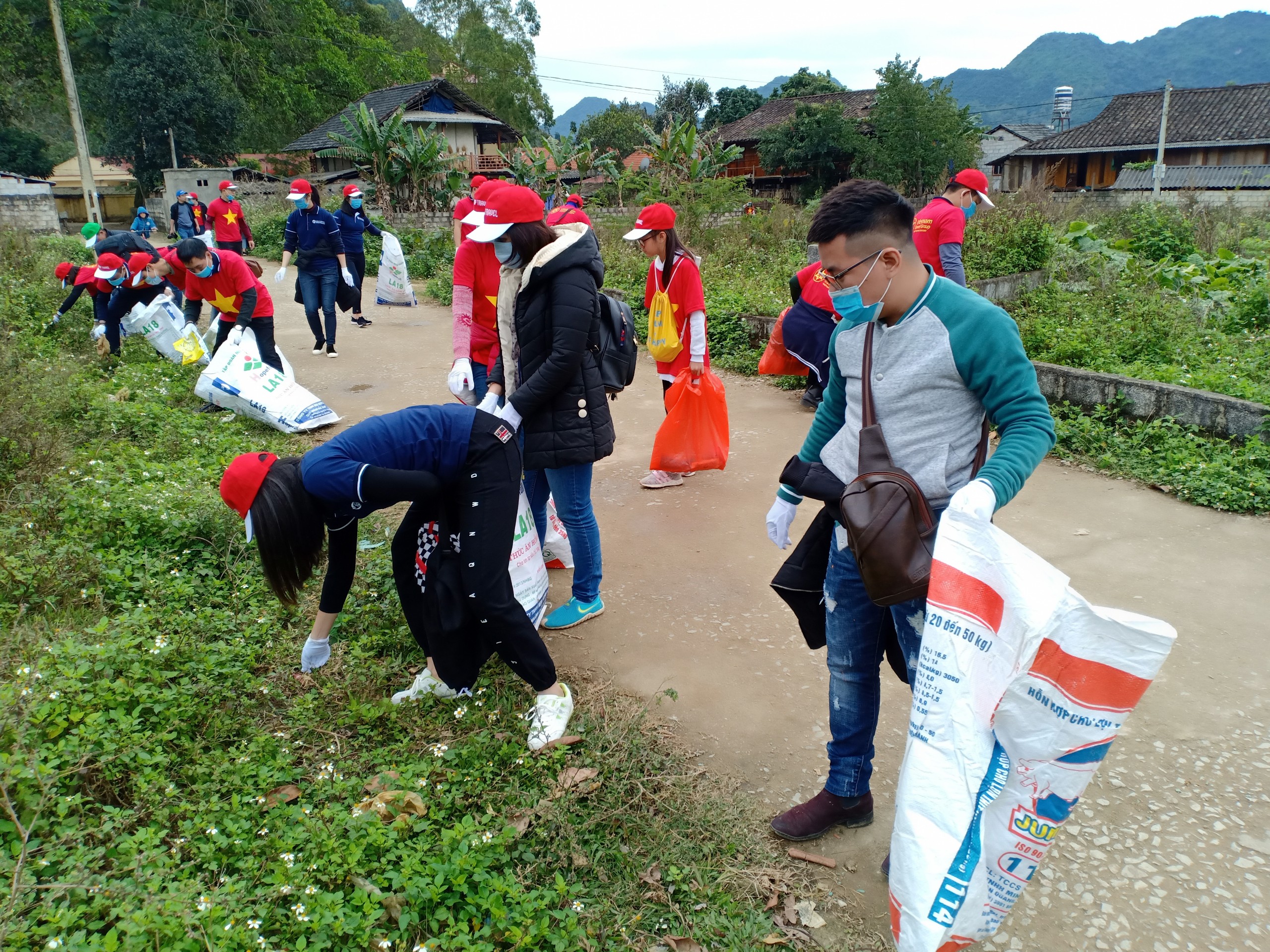 Sau khi trao quà, nhóm tiếp tục tham gia hoạt động thu gom rác thải, góp phần làm cho môi trường trở nên xanh - sạch - đẹp hơn, giúp bà con xã Quỳnh Sơn có thêm một cái Tết vui vẻ và ý nghĩa.