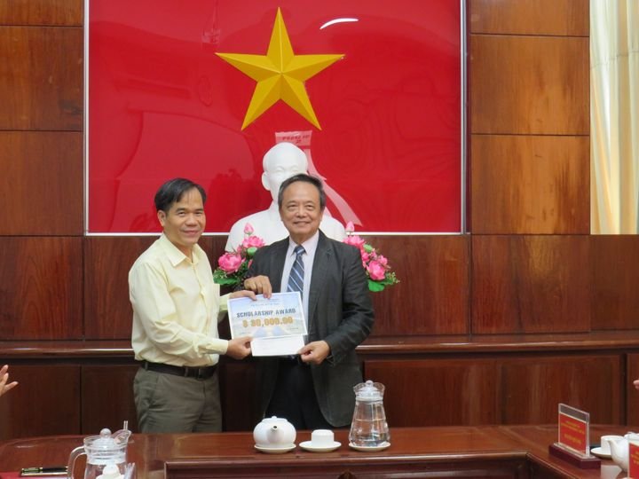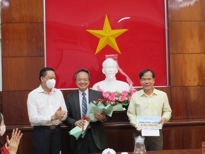 Tiến sĩ Dương Mạnh Cường trao học bổng cho TS. Nguyễn Phúc Tăng – Phó Giám đốc Sở GD-ĐT TP Cần Thơ