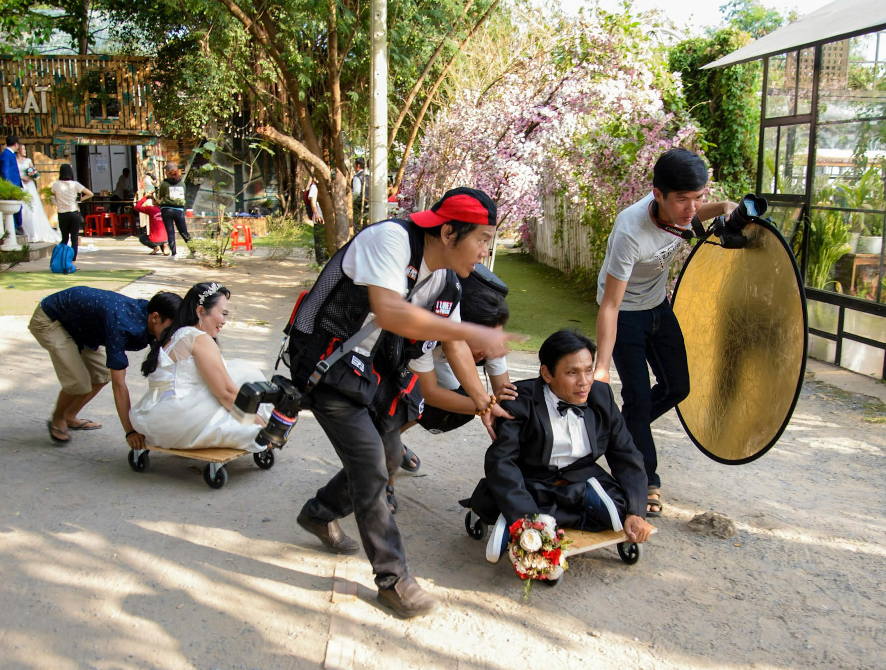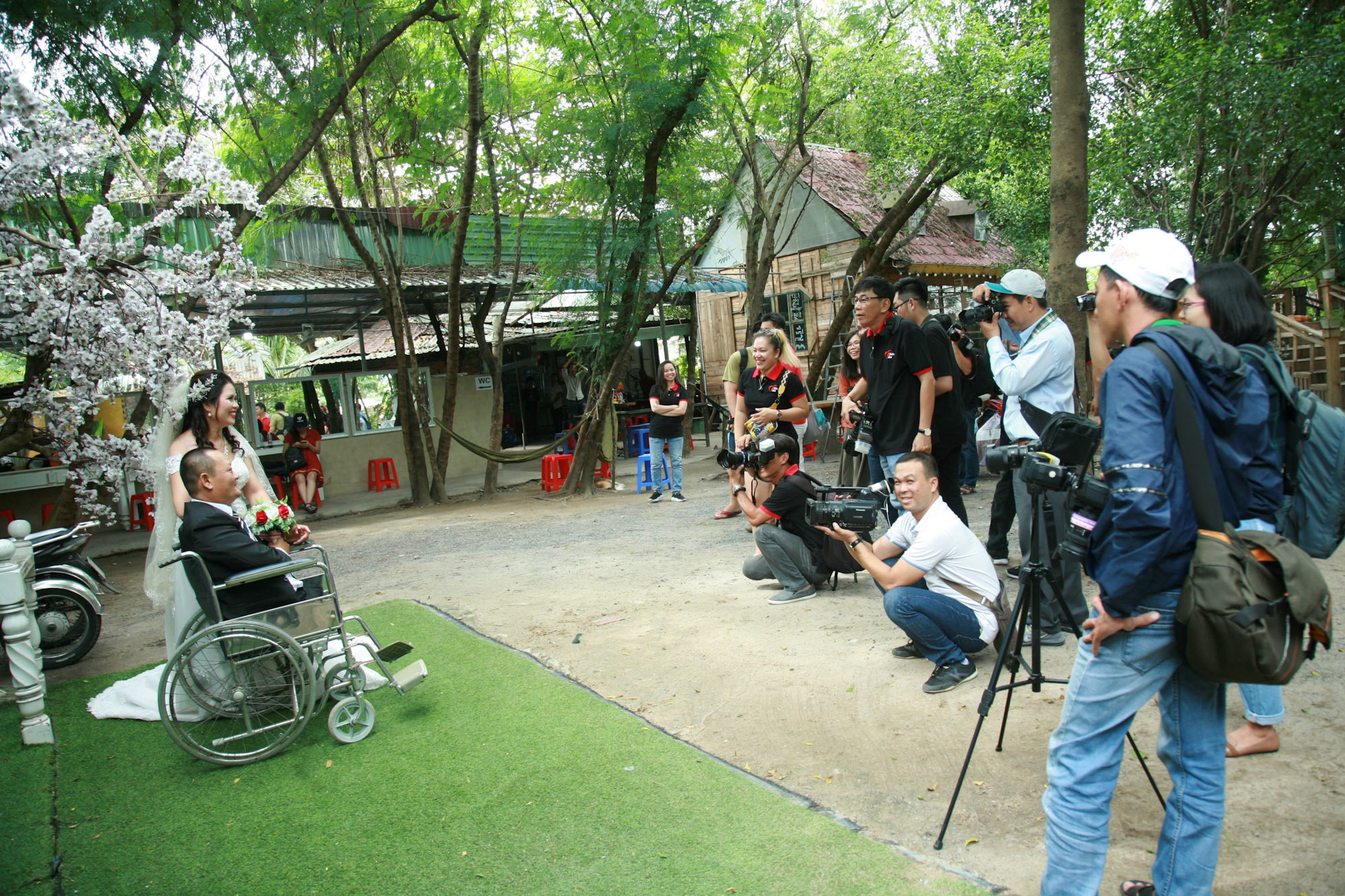 Hình ảnh một buổi chụp hình cho hai cặp vợ chồng đều bị liệt. Vì đã thông báo trước hoàn cảnh của họ trước trên Facebook nên buổi chụp hôm đó có đến 16 tay máy và hai thợ trang điểm.