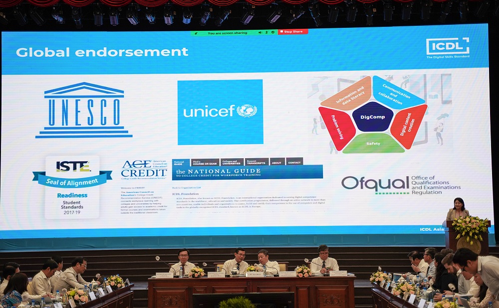 Tham dự Hội thảo có PGS.TS Nguyễn Văn Phúc - thứ trưởng Bộ Giáo dục và Đào tạo, Phó trưởng Ban Chuyển đổi số quốc gia; PGS.TS Dương Anh Đức - Phó chủ tịch UBND TP.HCM, Trưởng Ban Chỉ đạo chuyển đổi số ngành giáo dục TP.HCM.