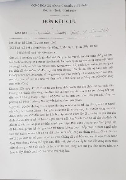 Đơn Kêu cứu của ông Đỗ Minh Tú gửi tại Tòa soạn.