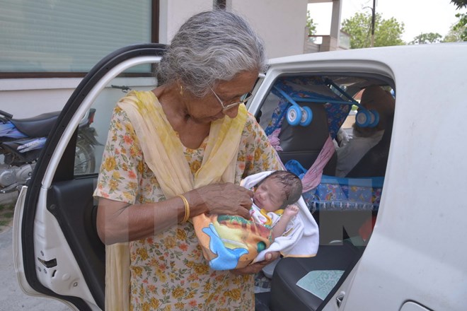 Theo CCTV News, cụ bà Daljinder Kaur, 72 tuổi, vừa sinh một bé trai đầu lòng sau hai năm được chữa trị tại bệnh viện Haryana ở Amritsar, Ấn Độ cùng với người chồng 79 tuổi.