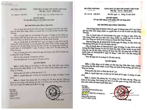 Căn cứ quy định trên, ngày 17/09/2018, Bộ trưởng Trần Tuấn Anh ký Quyết định số 3331/QĐ-BCT Về việc điều động và bổ nhiệm công chức, với nội dung (sau đây viết tắt là QĐ 3331):