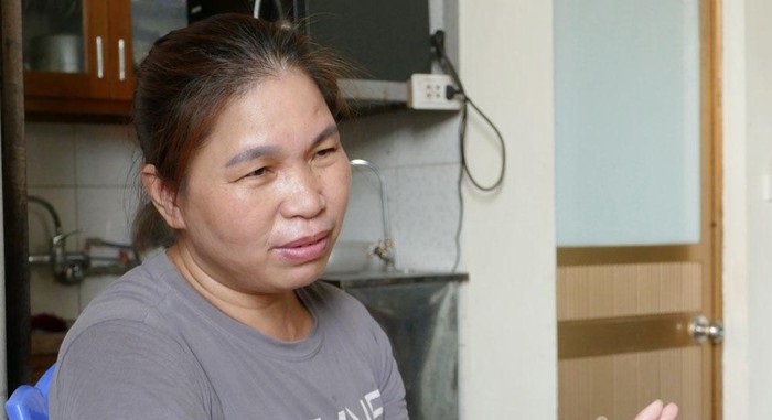 Có tiếng người gọi cửa để mua hàng, chị Nguyễn Thị Xuân Ánh (SN 1972, Hoài Đức, Hà Nội) với tay lấy chiếc nạng, đi ra để gặp khách.