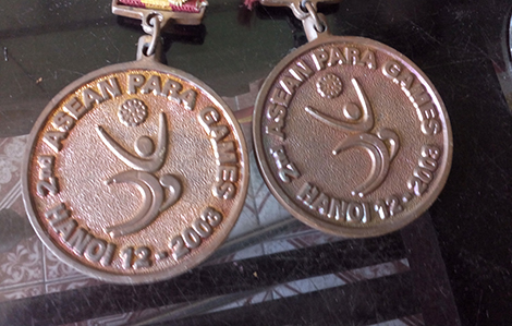 | ...và 2 chiếc huy chương đồng ông giành được tại Đại hội Thể thao Người khuyết tật Đông Nam Á năm 2003 tổ chức ở Hà Nội. |