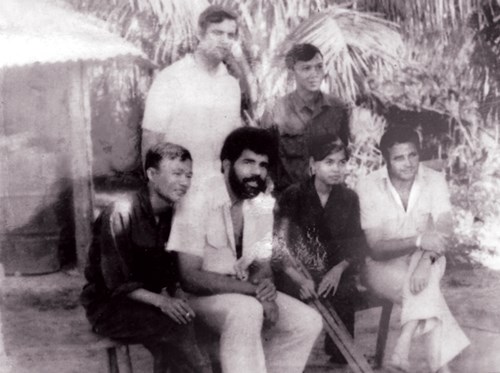 | Nữ y tá Trần Thị Thanh Lịch (ngồi thứ hai từ phải sang) chụp ảnh kỷ niệm cùng các phóng viên quốc tế và Việt Nam tại trạm y tế xã Hoài Châu những năm chiến tranh. |