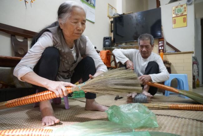 Không muốn ỉ lại con cái, nên dù ở tuổi đáng ra nên nghỉ ngơi để con cháu phụng dưỡng, hai vợ chồng ông bà vẫn mệt mài làm việc. Ngoài những ngày đi bán hàng, ngày mưa nghỉ ở nhà ông bà cũng không nghỉ ngơi, tay chân liên tục vò hoa chổi, bó chổi cho lần bán hàng tới.