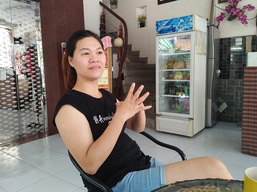 Mỗi lần, ai muốn hỏi điều gì, Thy sẽ là “thông dịch viên” giúp người đối diện hiểu được ngôn ngữ ký hiệu của bố mẹ. Thông qua Thy, chúng tôi được nghe câu chuyện tình yêu “có một không hai” của anh Ánh và chị Phương.