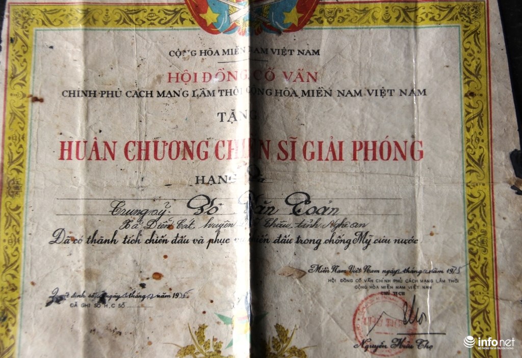 | Với thành tích xuất sắc đấu tranh bảo vệ tổ quốc, ông Toản được nhà nước trao tặng Huân chương chiến sỹ giải phóng năm 1975 |
