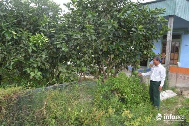 | Ông Nguyễn Văn Cử bên những gốc cây trĩu quả của gia đình |