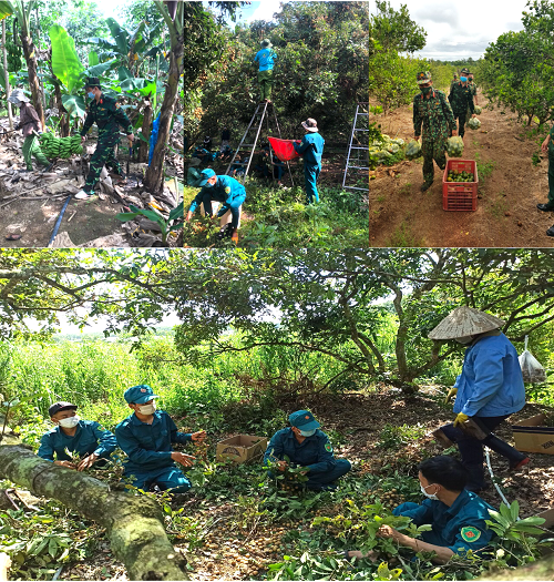 Cũng trong mùa dịch này, đoàn viên thanh niên (ĐVTN) Bộ CHQS tỉnh Bình Phước cùng các lực lượng khác trực thuộc Lực lượng vũ trang (LLVT) tỉnh đã giúp người dân địa phương thu hoạch, vận chuyển, tiêu thụ hơn 290 nghìn tấn nông, thủy sản với 995 ngày công; bảo đảm gần 70 lượt phương tiện vận chuyển phục vụ công tác phòng, chống dịch COVID-19 xuất phát ra khỏi tỉnh Bình Phước.
