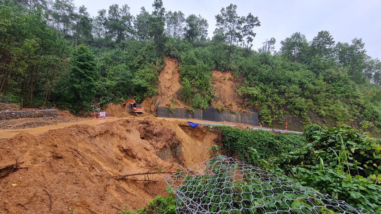 Đường vào Huyện A Lưới bị sạt lở nghiêm trọng.