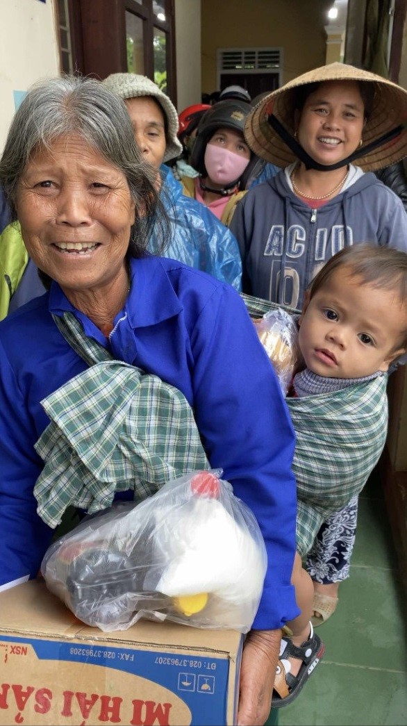 Những niềm vui hân hoan của bà con khi nhận được quà cứu trợ.