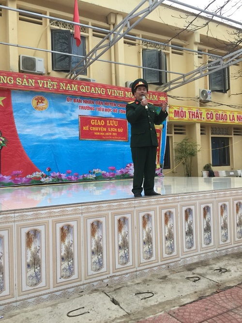 CLB Anh hùng nhân chứng lịch sử giao lưu, kể chuyện lịch sử cho các em học sinh.