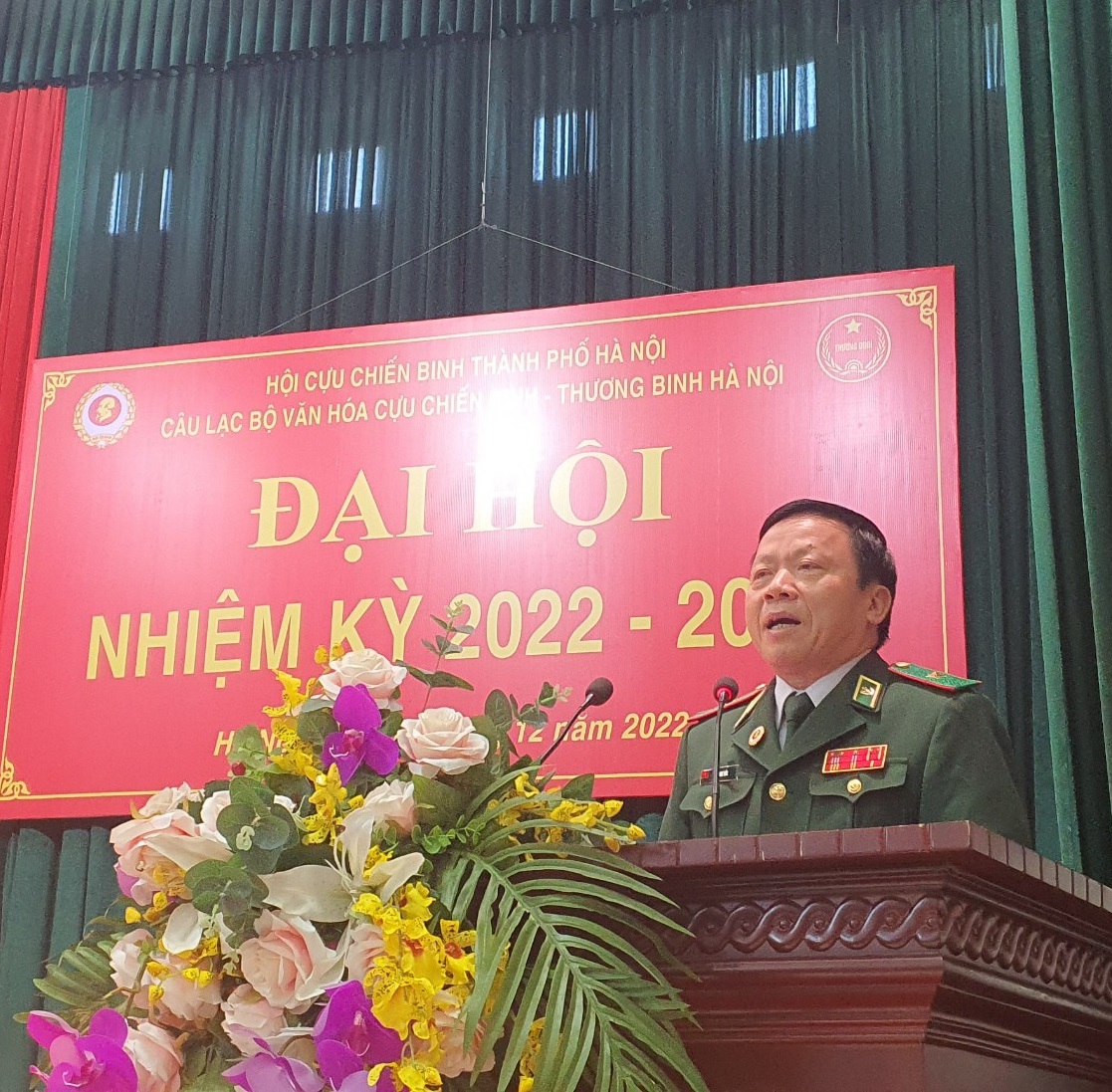 Thiếu tướng Lê Hữu Đức- Chủ tịch hội CCB Thành phố Hà Nội tham dự và phát biểu tại Đại hội
