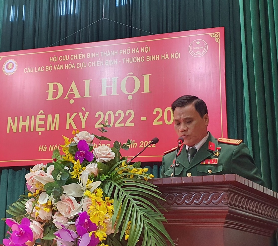 Ông Nguyễn Văn Quỳnh- Chủ nhiệm CLB Văn hóa Cựu chiến binh- thương binh Hà Nội thay mặt đoàn Chủ tịch phát biểu chúc mừng Đại hội
