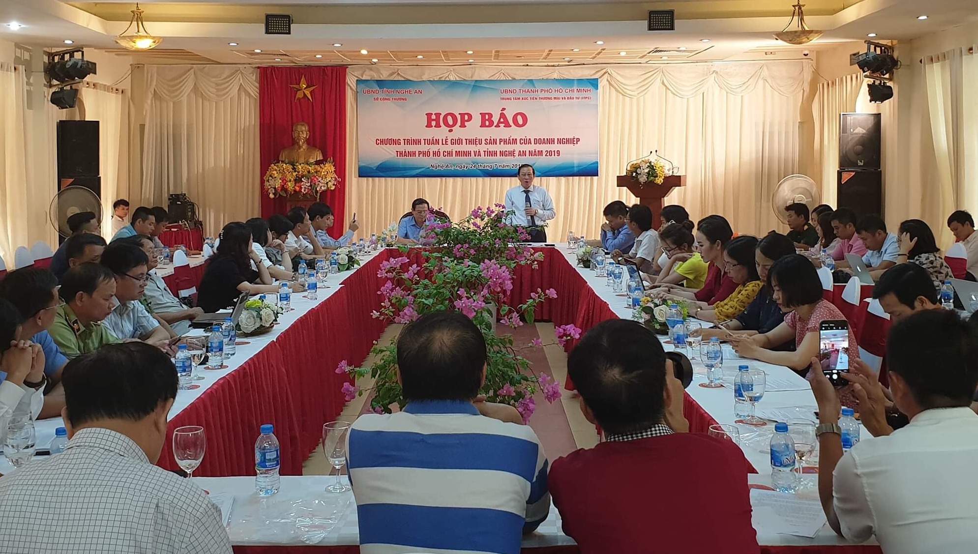 Để làm tốt mọi công tác chuẩn, chương trình diễn ra thành công, chiều 24/7/2019, Sở Công Thương Nghệ An đã tổ chức họp báo về việc phối hợp tổ chức chương trình “Tuần lễ giới thiệu sản phẩm của doanh nghiệp TP. Hồ Chí Minh và tỉnh Nghệ An năm 2019”.