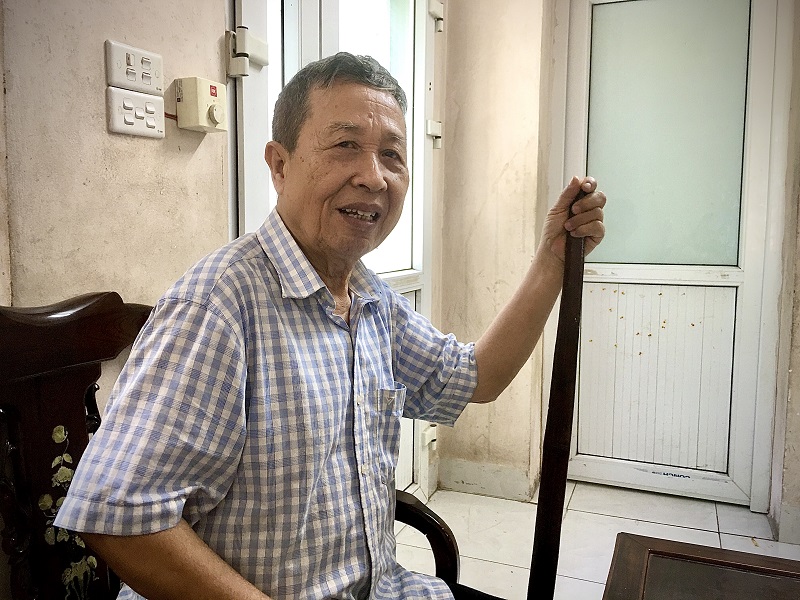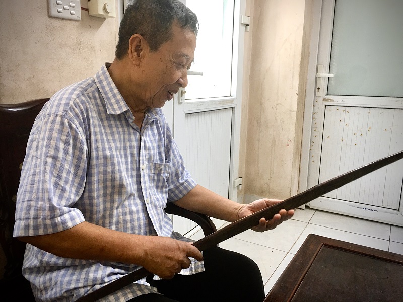 Ông Hoàng Văn Chuôm gìn giữ chiếc đòn gánh mấy chục năm như một kỉ vật về một thời gian khó.