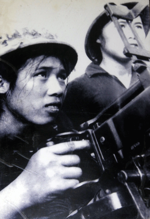 | Cô du kích nhỏ Nguyễn Thị Dần trong một lần cùng đồng đội chiến đấu bảo vệ vùng trời của tổ quốc. Ảnh: C.T |