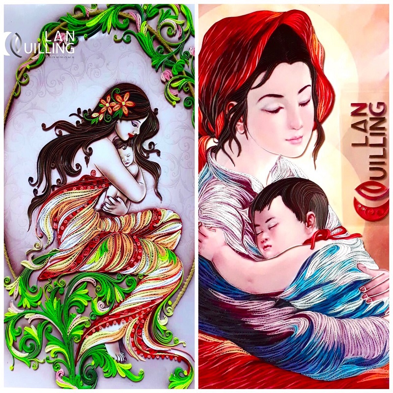 Bức tranh khắc họa sinh động tình mẫu tử thiêng liêng của Lan Quilling Handmade