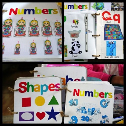 Bên cạnh đó, là chiếc bàn cũng ngổn ngang giấy loại, nhưng cũng có nhiều sản phẩm đã hoàn thiện. Đó là những cuốn sách về chủ đề số đếm, chữ cái, con vật… với hình minh họa thú vị, sinh động, độc đáo.