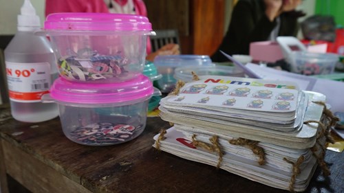 “Công việc cũng vừa sức, cũng không khó lắm. Mỗi tháng Khởi trả lương 1 triệu đồng, cũng có thêm thu nhập phụ gia đình”, ông Trung nói. Ngoài hai lao động này, Khởi hợp đồng với chị Trần Thị Huế (SN 1991) phụ trách chọn hình ảnh phù hợp với nội dung từng cuốn, cắt và dán vào từng “tờ” sách, với mức lương 3 triệu đồng/tháng.