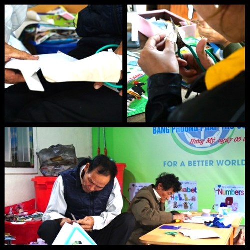 Hiện xưởng sản xuất sách từ vật liệu tái chế của Khởi có 2 công nhân của Khởi là ông Lê Văn Trung (SN 1968) và ông Phạm Xuân Thái (SN 1952), hai người khuyết tật ở trong xóm.