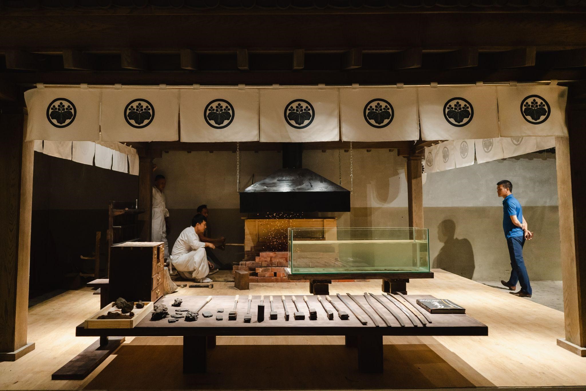 Khu vực rèn kiếm là điểm đến đầu tiên trong hành trình, nơi du khách được chiêm ngưỡng tận mắt các công cụ rèn kiếm, các lưỡi thép được tạo ra từ quy trình tôi luyện thép trong lò rèn ở nhiệt độ cao và tạo hình lưỡi kiếm của các nghệ nhân.